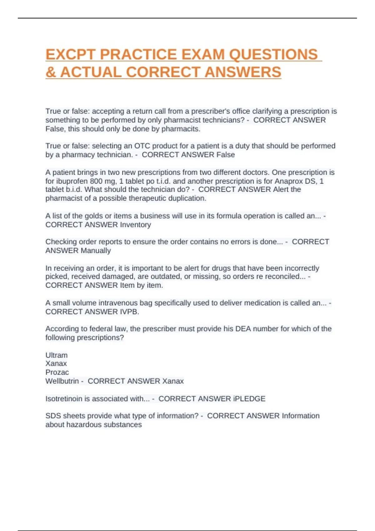 EXCPT PRACTICE EXAM QUESTIONS & ACTUAL CORRECT ANSWERS