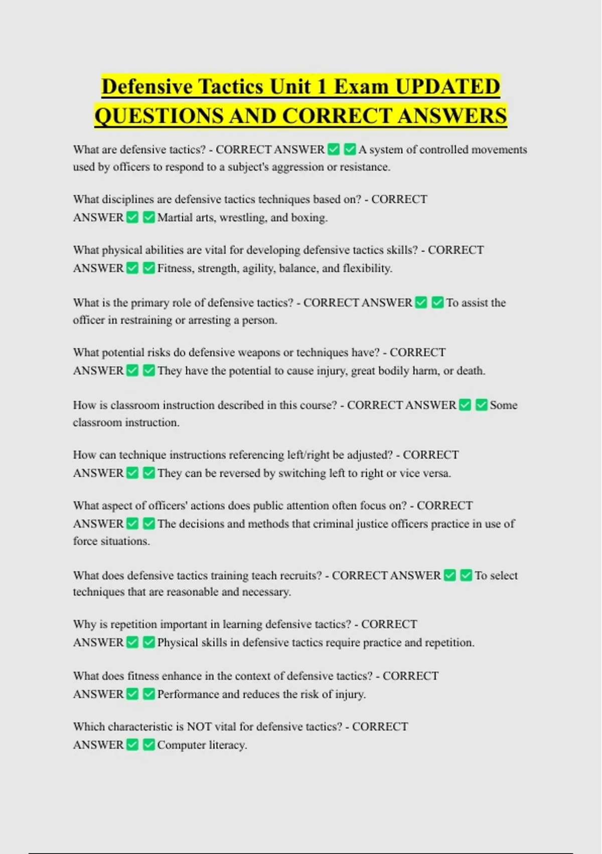 Defensive Tactics Unit 1 Exam UPDATED QUESTIONS AND CORRECT ANSWERS