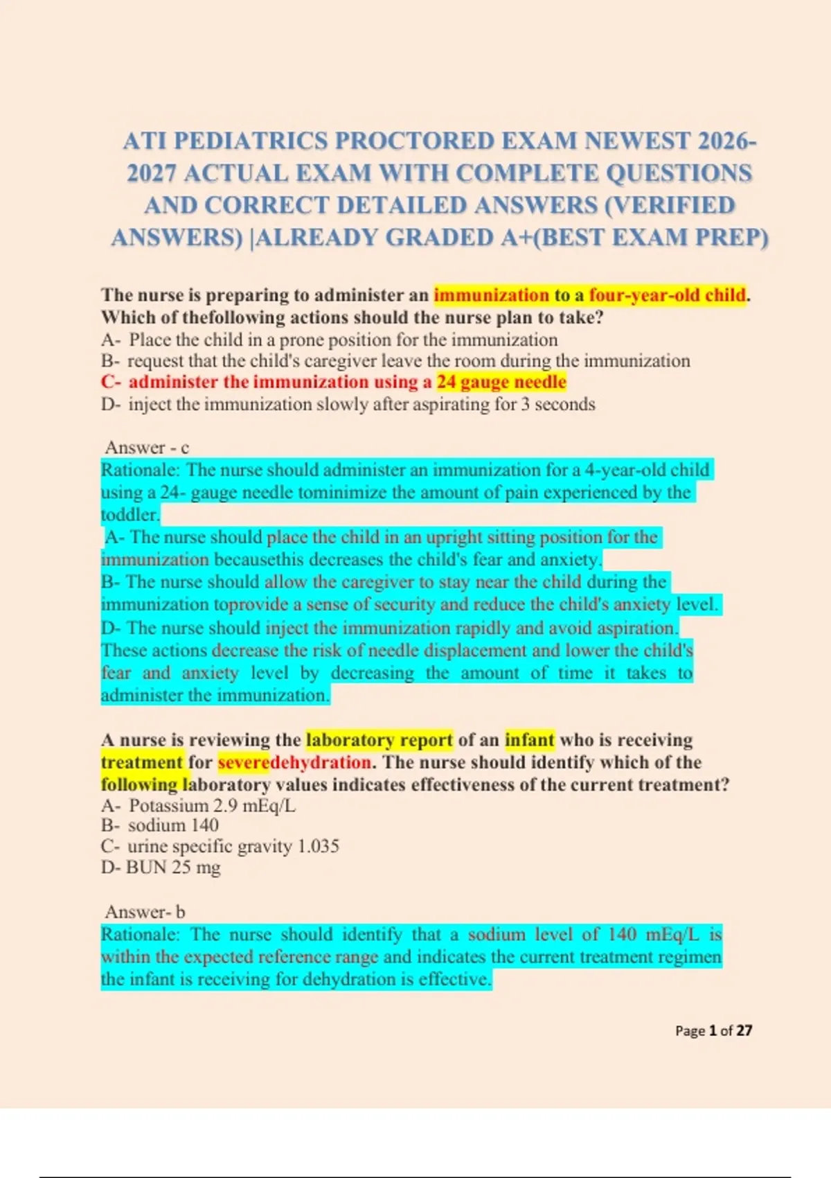 ATI PEDIATRICS PROCTORED EXAM NEWEST 2026- 2027 ACTUAL EXAM WITH COMPLETE QUESTIONS AND CORRECT DETAILED ANSWERS (VERIFIED ANSWERS) |ALREADY GRADED A+(BEST EXAM PREP)