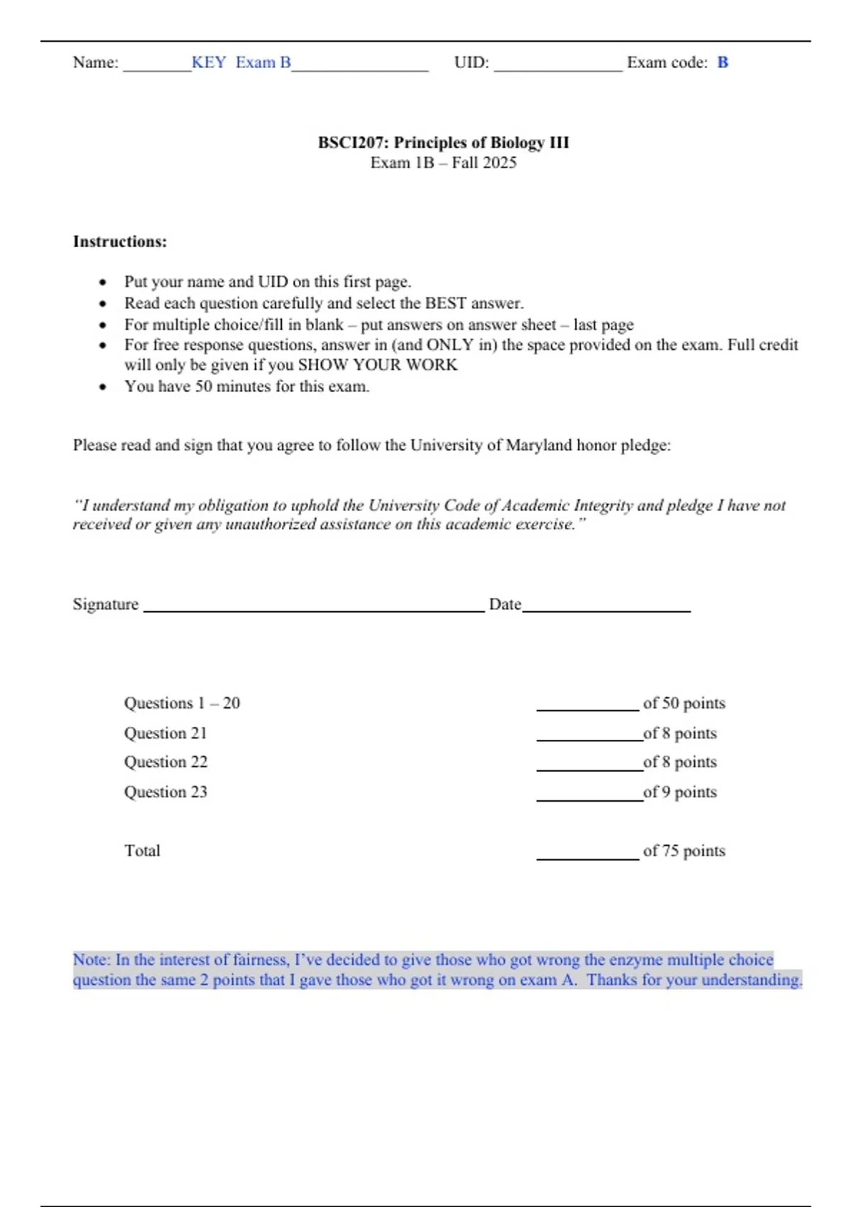 Exam 1B – Fall 2025