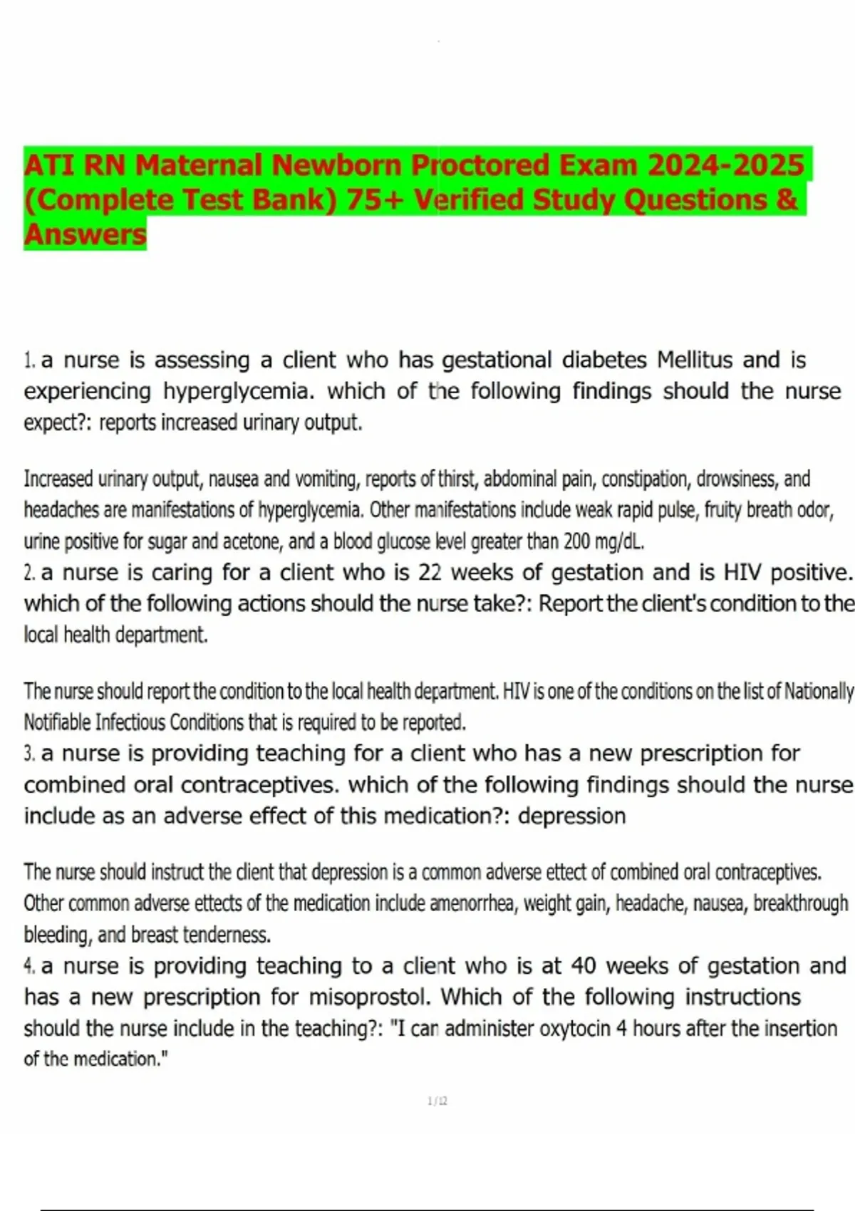 ATI RN Maternal Newborn Proctored Exam (Complete Test Bank) 75+ Verified Study Questions & A ATI RN Maternal Newborn Proctored Exam (Complete Test Bank) 75+ Verified Study Questions & A ATI RN Maternal Newborn Proctored Exam (Complete Test Bank) 75+ Verified Study Questions & A ATI RN Maternal Newborn Proctored Exam (Complete Test Bank) 75+ Verified Study Questions & A