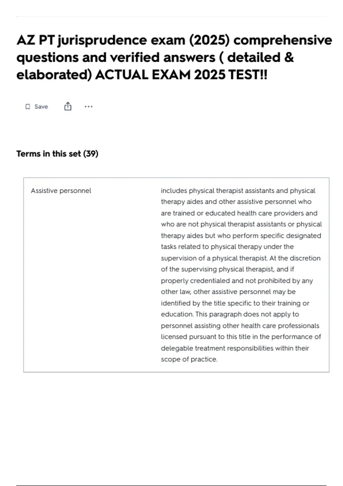 AZ PT jurisprudence exam (2025) comprehensive questions and verified answers ( detailed & elaborated) ACTUAL EXAM 2025 TEST!!