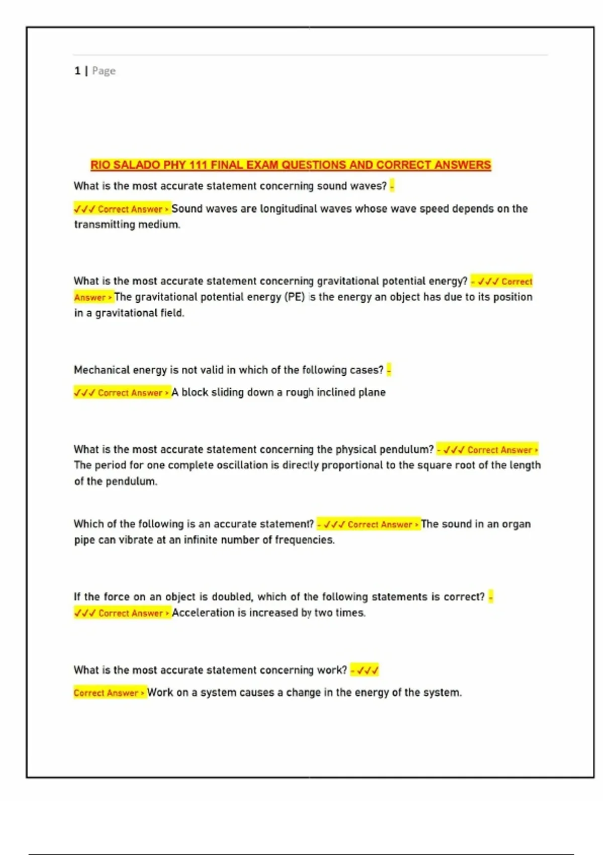 RIO SALADO PHY 111 FINAL EXAM QUESTIONS AND CORRECT ANSWERSRIO SALADO PHY 111 FINAL EXAM QUESTIONS AND CORRECT ANSWERS