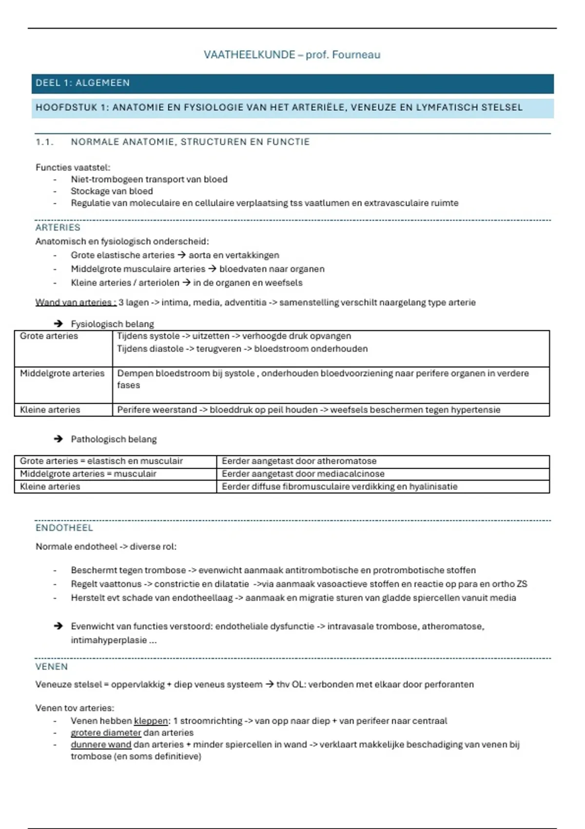 HOOFDSTUK 1: ANATOMIE EN FYSIOLOGIE VAN HET ARTERIËLE, VENEUZE EN LYMFATISCH STELSEL