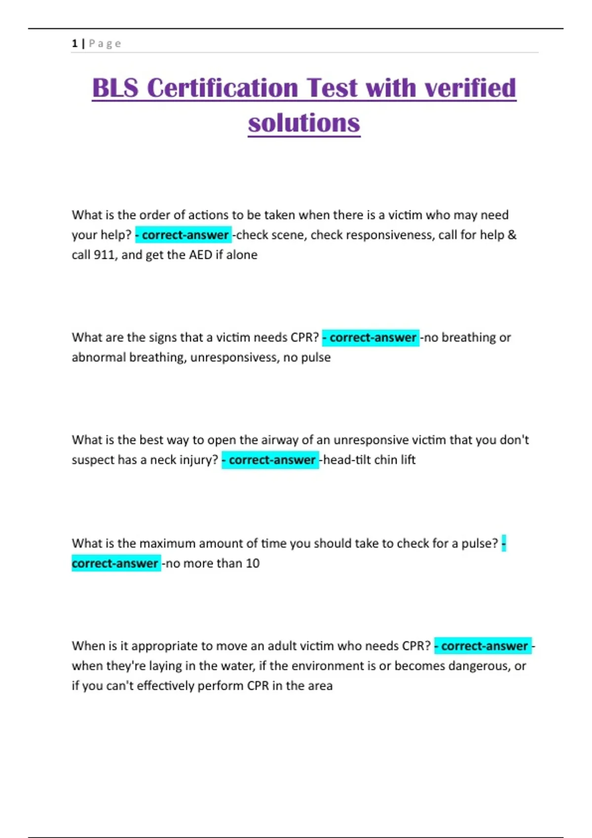 BLS Certification Test with verified