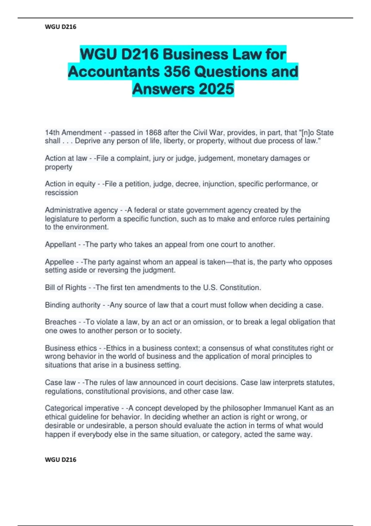 WGU D216 Business Law for