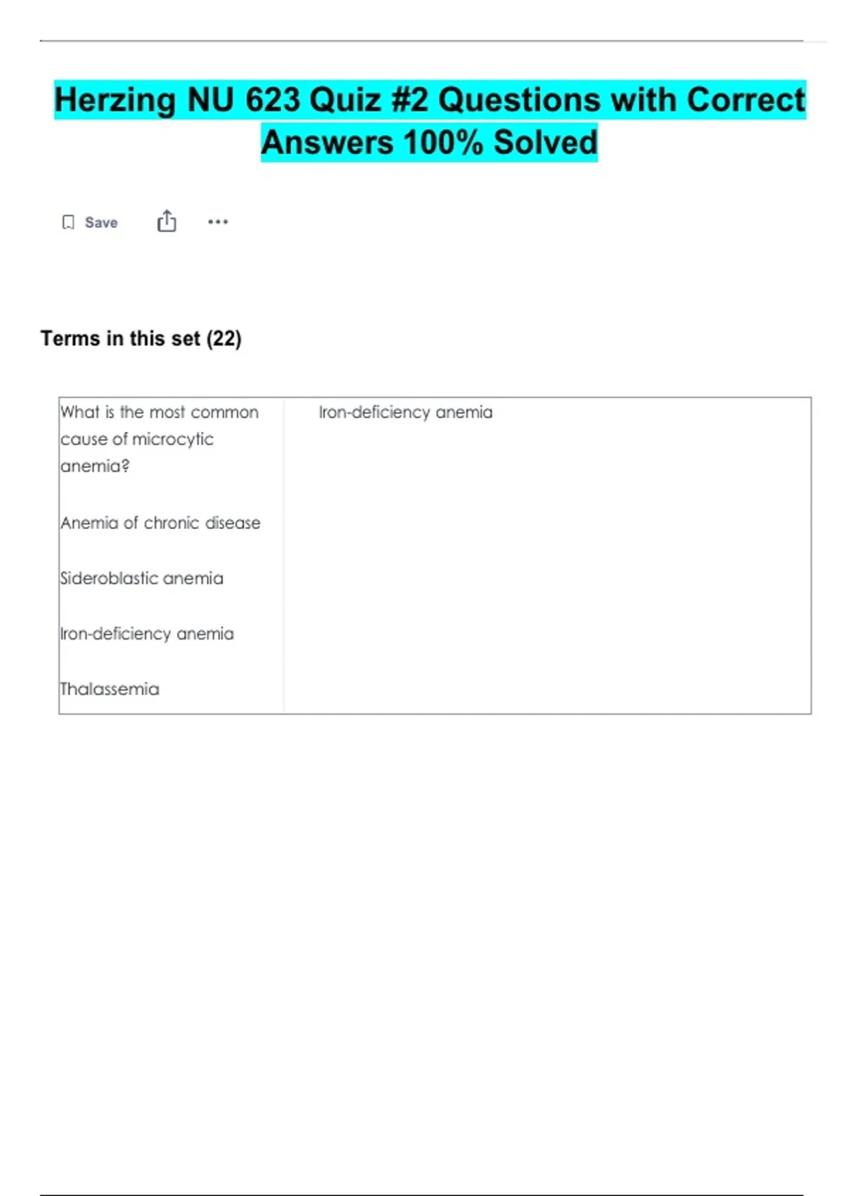 Herzing NU 623 Quiz #2 Questions with Correct Answers 100% Solved