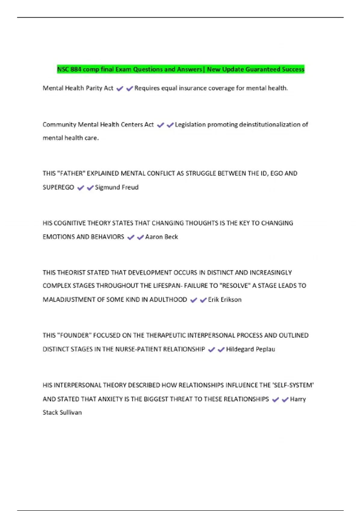 Ace Your Exams with Premium Study Guides! Unlock your full potential with our expertly crafted revision materials. Whether you're prepping for exams, quizzes, or looking to solidify your understanding, we've got you covered. Our study guides, summaries, and test banks are designed to simplify complex topics and enhance your knowledge retention. What We Offer: Comprehensive Summaries: Key points made easy for quick revision. Test Banks: Practice with real exam-like questions. Exam Prep Guides: Focused content to boost your scores. Instant Access: Download and start studying immediately! Don’t just study harder—study smarter! Excel in your exams with our trusted materials. You are Welcome. SUCCESS!!!