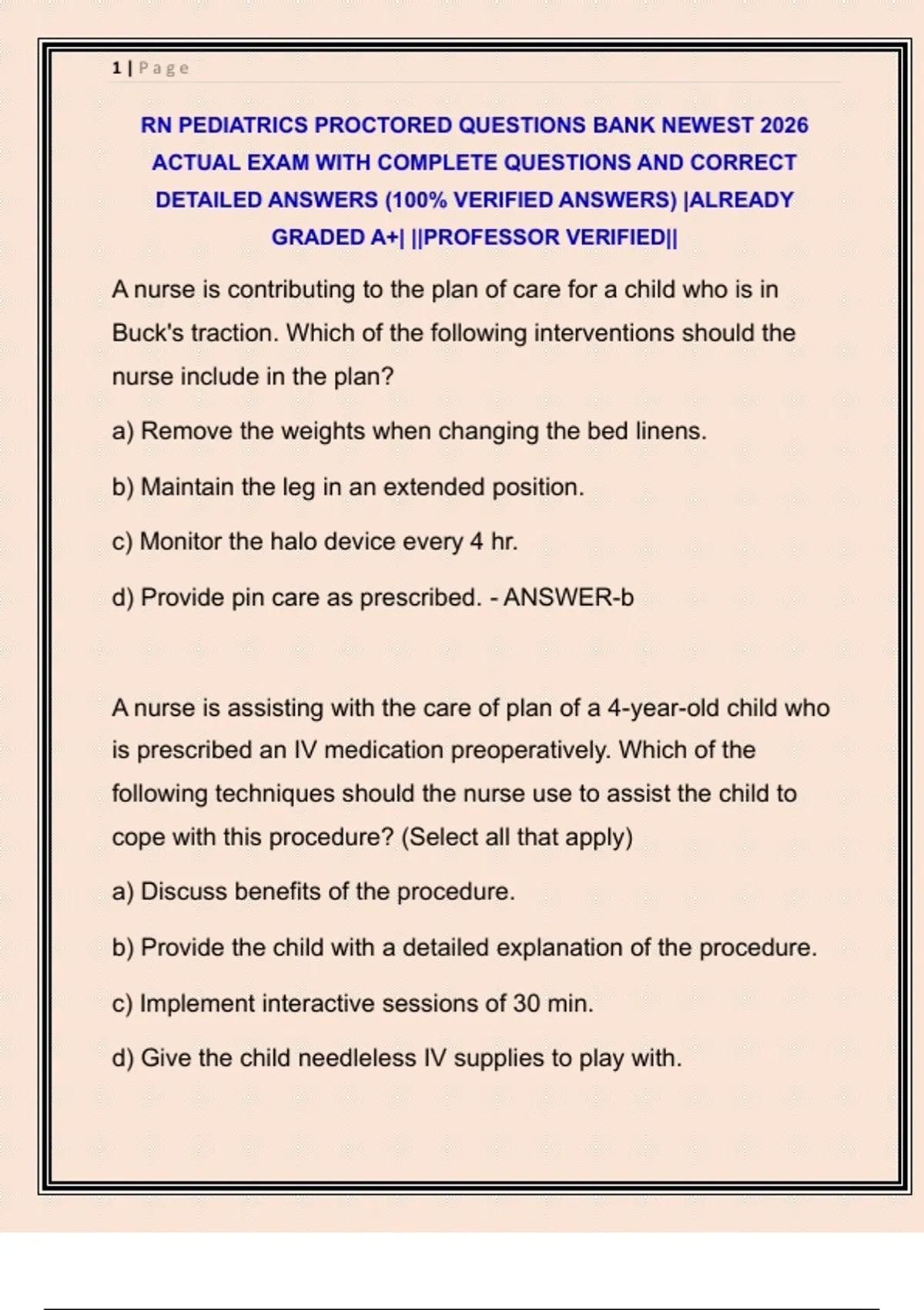 RN PEDIATRICS PROCTORED QUESTIONS BANK NEWEST 2026
