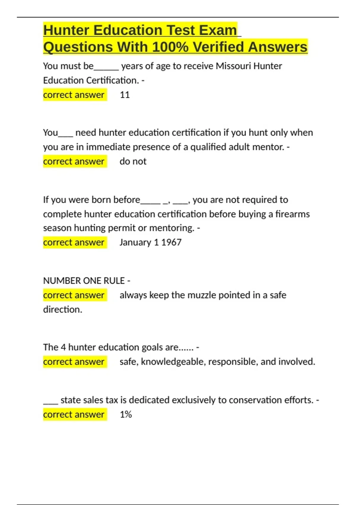 , Hunter Education Test Exam