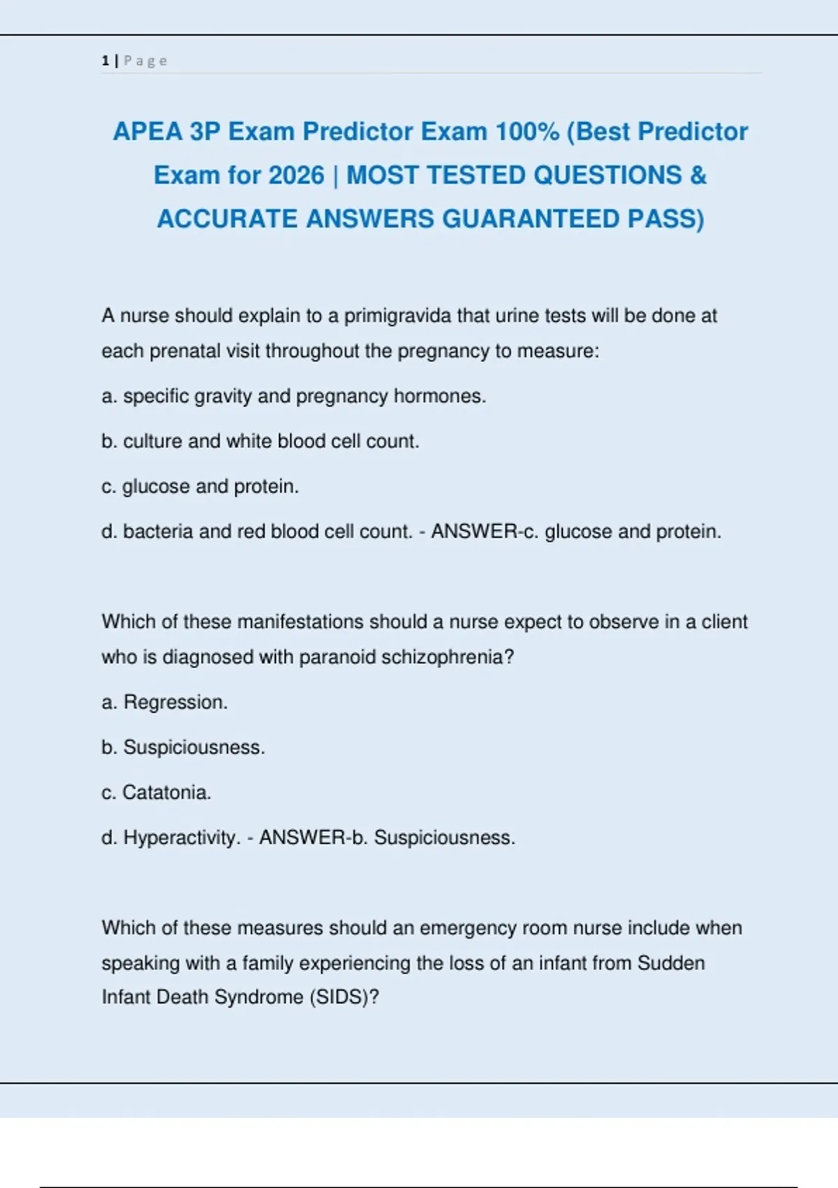 APEA 3P Exam Predictor Exam 100% (Best Predictor