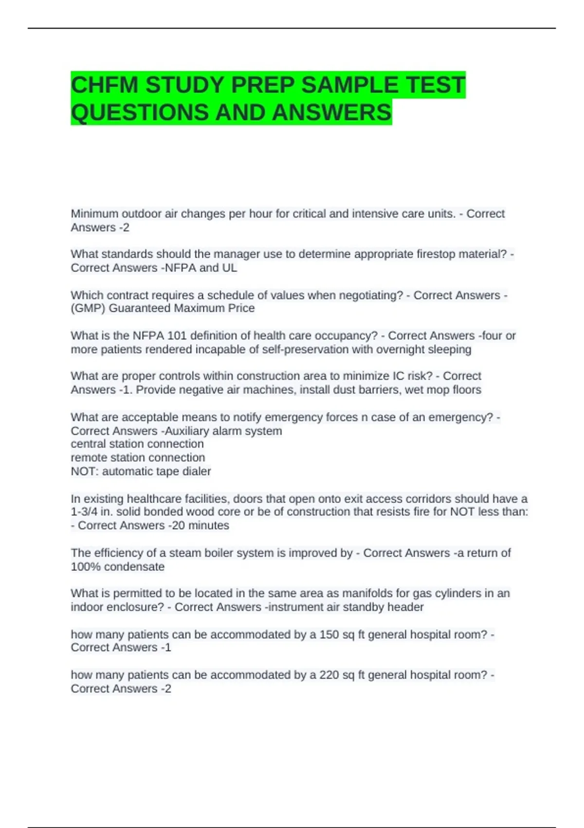 CHFM STUDY PREP SAMPLE TEST QUESTIONS AND ANSWERS