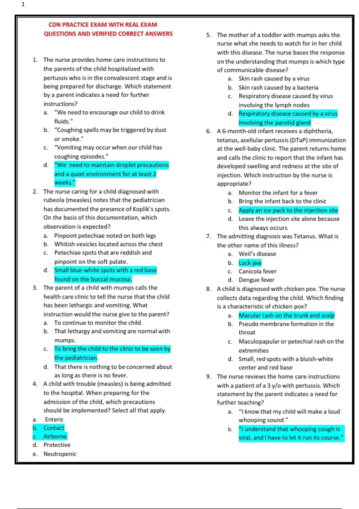 QUESTIONS AND VERIFIED CORRECT ANSWERS 5. The mother of a toddler with mumps asks the