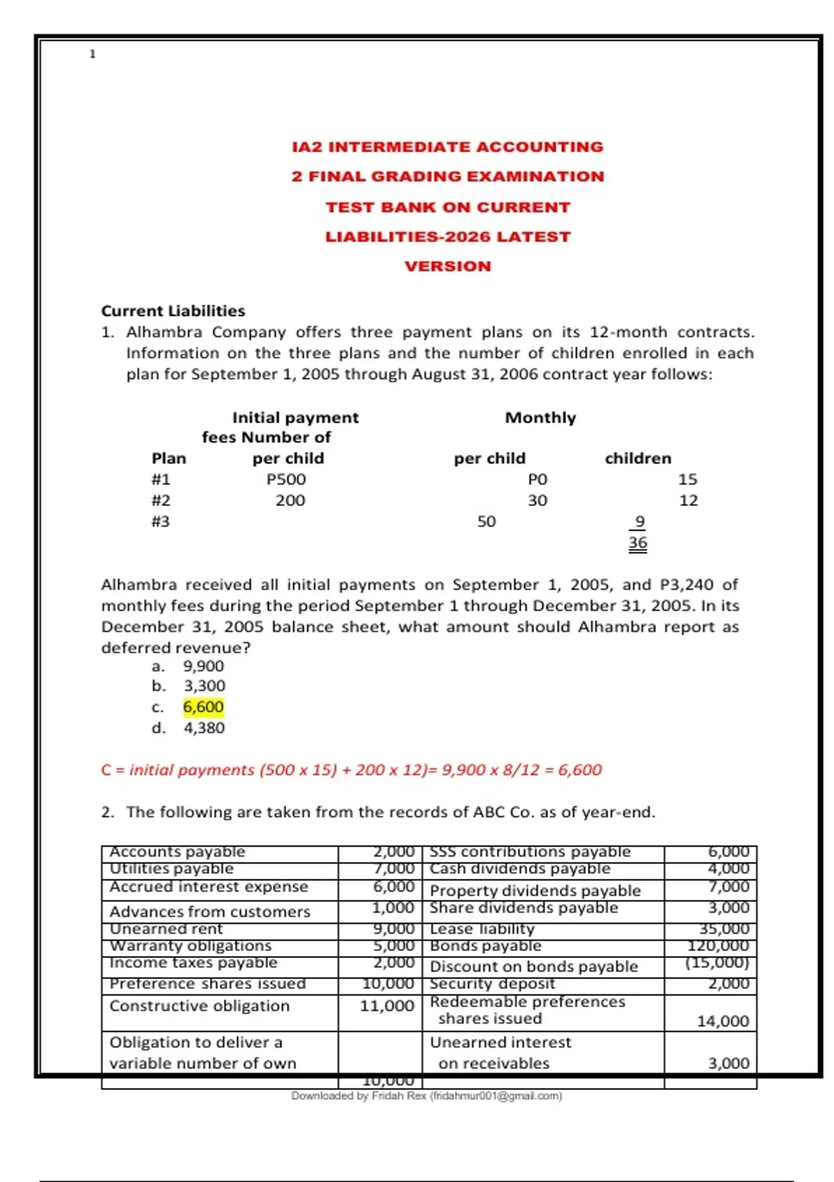 This course provides a comprehensive review of current liabilities in Intermediate Accounting II, using a structured test bank for Final Exam A. Topics include accounts payable, notes payable, accrued liabilities, contingent liabilities, payroll obligations, and current portions of long-term debt. Practice questions with detailed solutions help students master recognition, measurement, disclosure, and reporting, enhancing exam readiness and professional accounting competence.