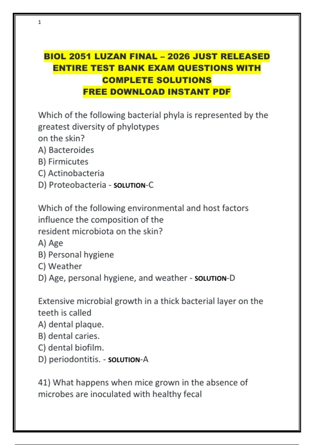 BIOL 2051 LUZAN FINAL – 2026 JUST RELEASED