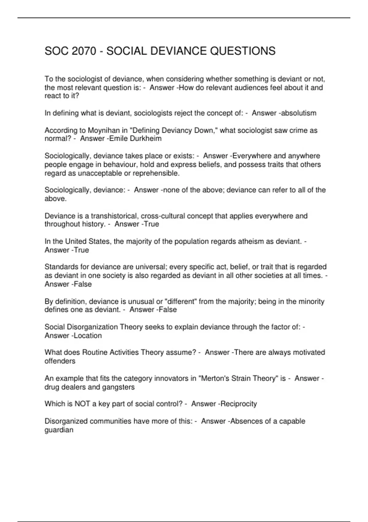 SOC 2070 - SOCIAL DEVIANCE QUESTIONS