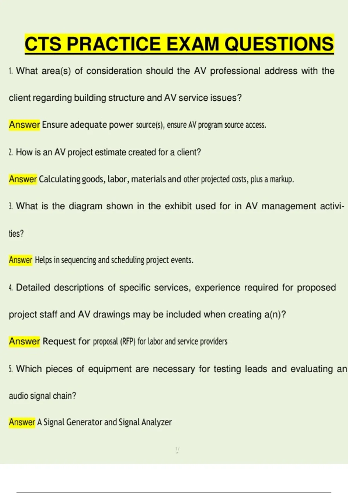 1. What area(s) of consideration should the AV professional address with the