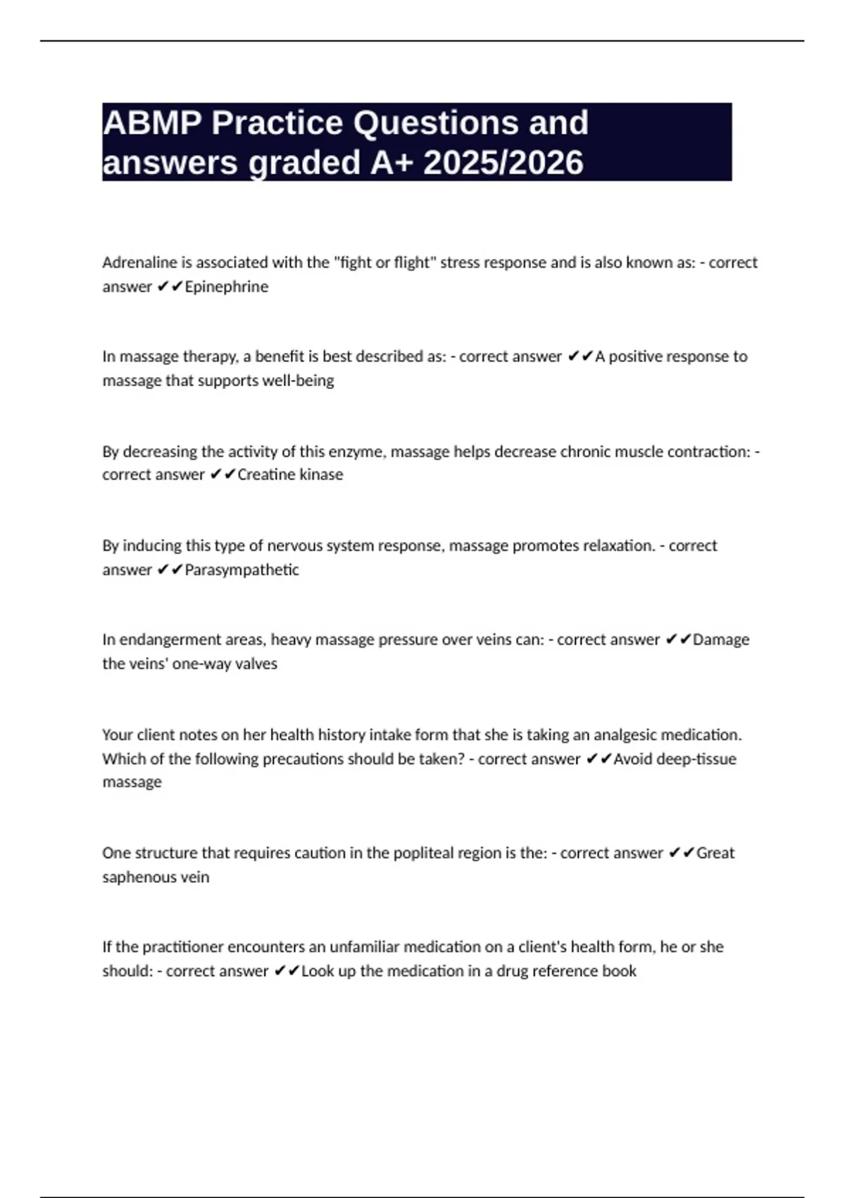In massage therapy, a benefit is best described as: - correct answer ✔✔A positive response to