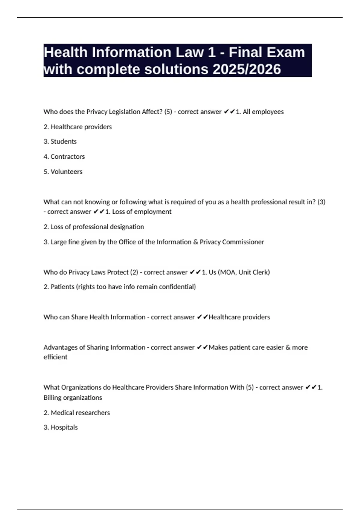 Health Information Law 1 - Final Exam with complete solutions 2025/2026