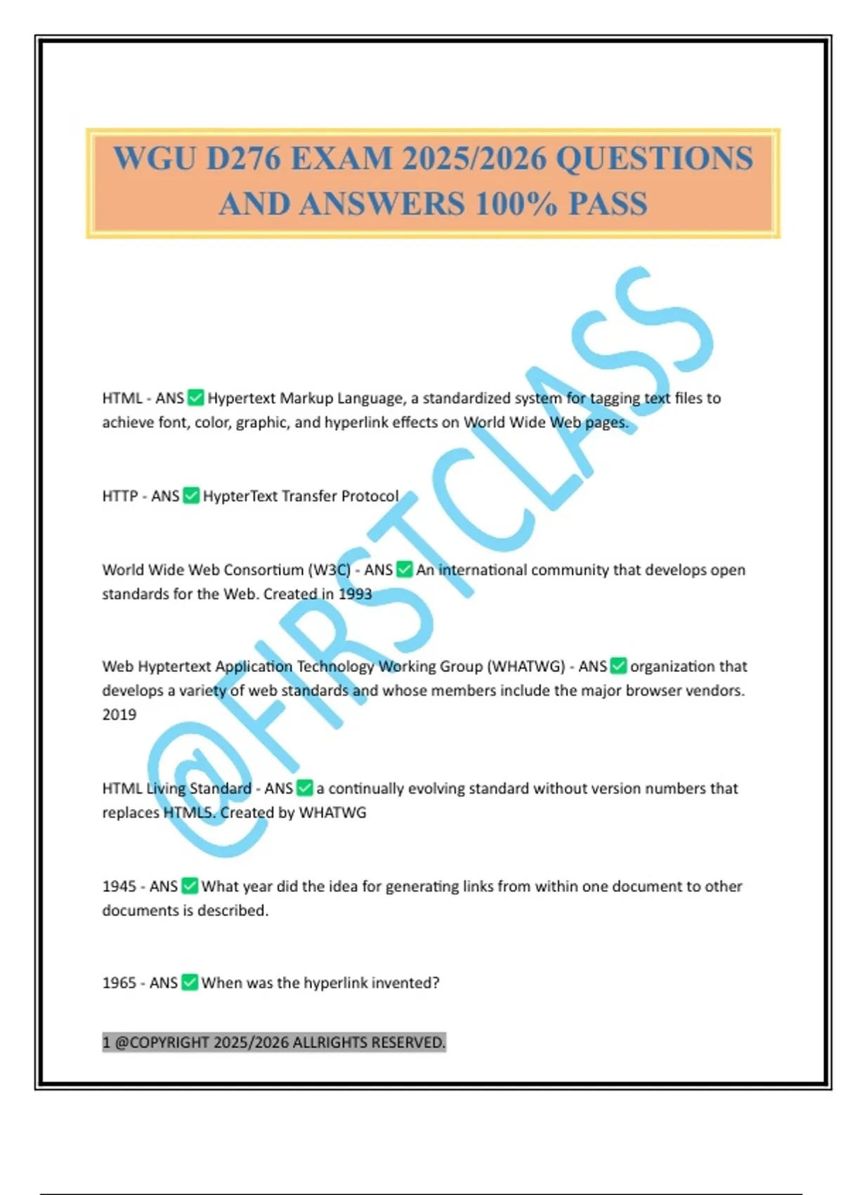 WGU D276 EXAM 2025/2026 QUESTIONS AND ANSWERS 100% PASS