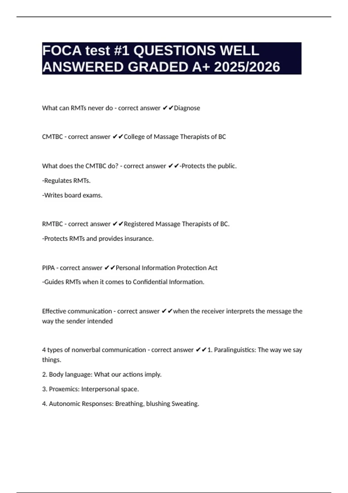 CMTBC - correct answer ✔✔College of Massage Therapists of BC