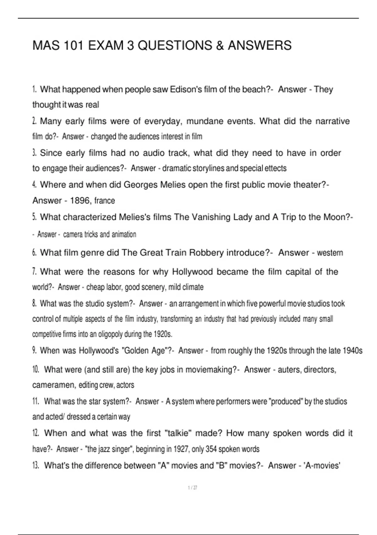 8. What was the studio system?- Answer - an arrangement in which five powerful movie studios took