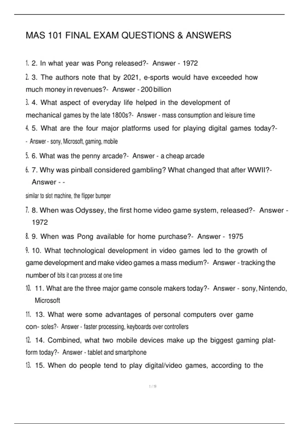 MAS 101 FINAL EXAM QUESTIONS & ANSWERS