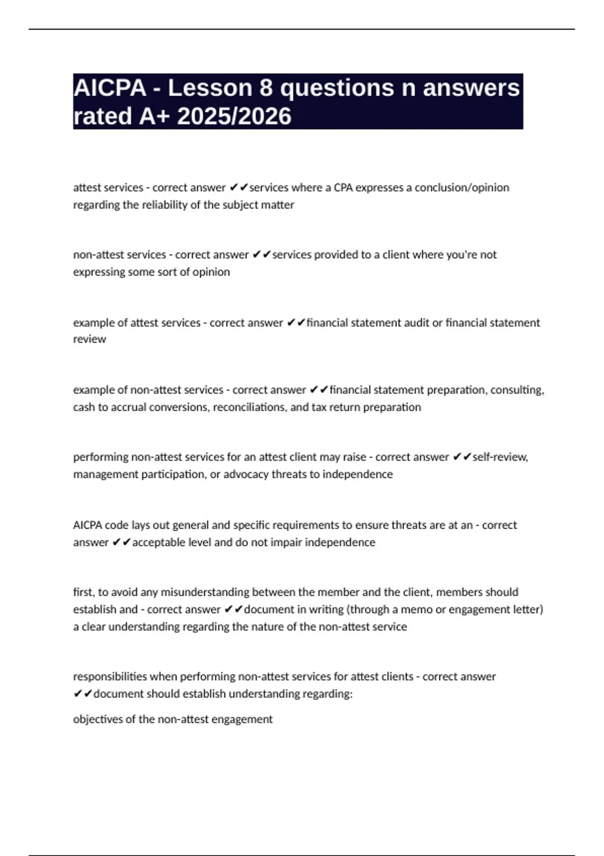 AICPA - Lesson 8 questions n answers rated A+ 2025/2026
