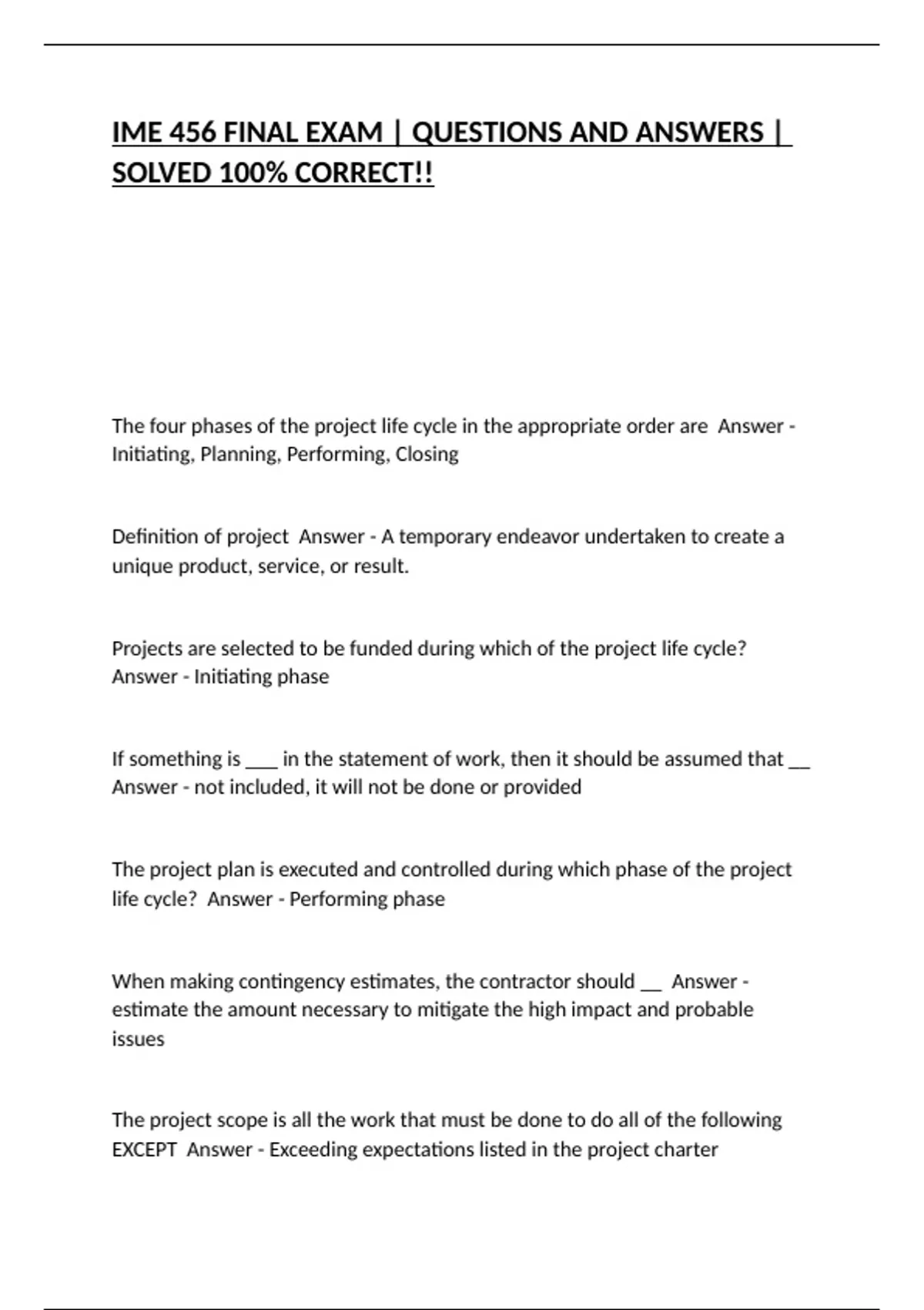 IME 456 FINAL EXAM | QUESTIONS AND ANSWERS |