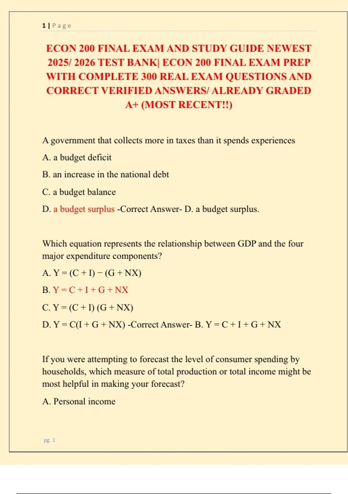 2025/ 2026 TEST BANK| ECON 200 FINAL EXAM PREP