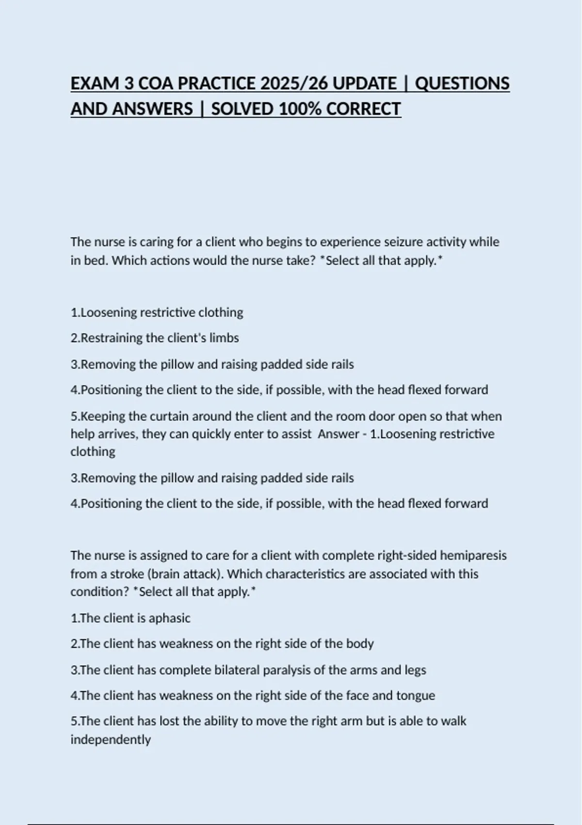 EXAM 3 COA PRACTICE 2025/26 UPDATE | QUESTIONS