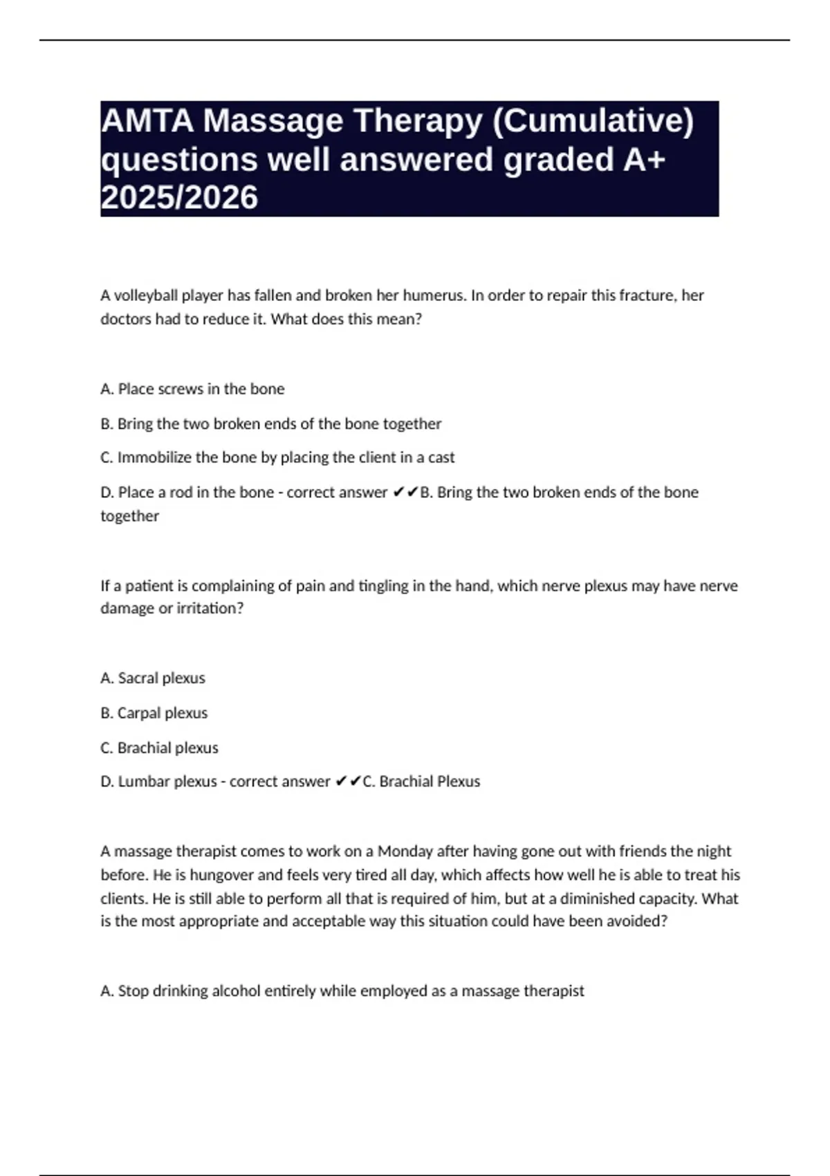 D. Lumbar plexus - correct answer ✔✔C. Brachial Plexus