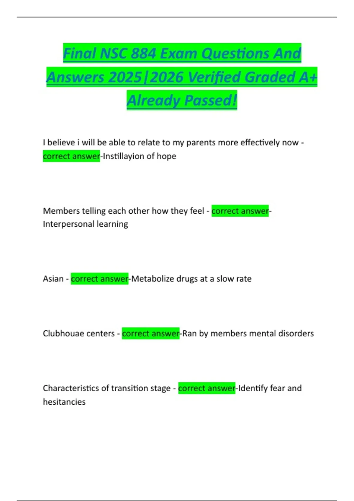 Final NSC 884 Exam Questions And Answers 2025|2026 Verified Graded A+ Already Passed!