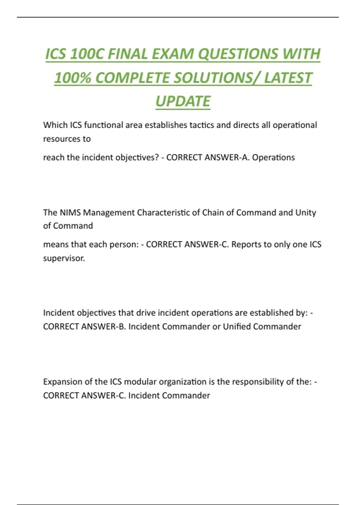 ICS 100C FINAL EXAM QUESTIONS WITH 100% COMPLETE SOLUTIONS/ LATEST UPDATE