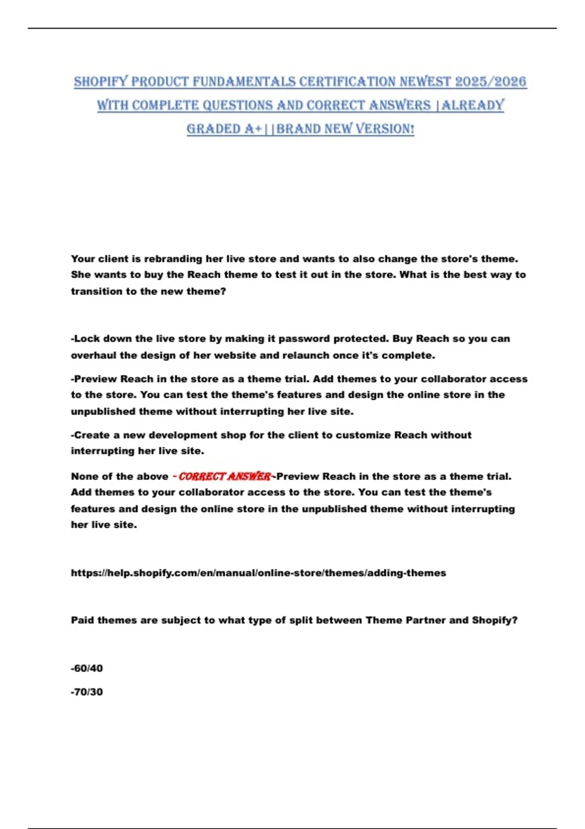 -Shopify Theme Partners keep 100% of sales - correct anSwer--70/30