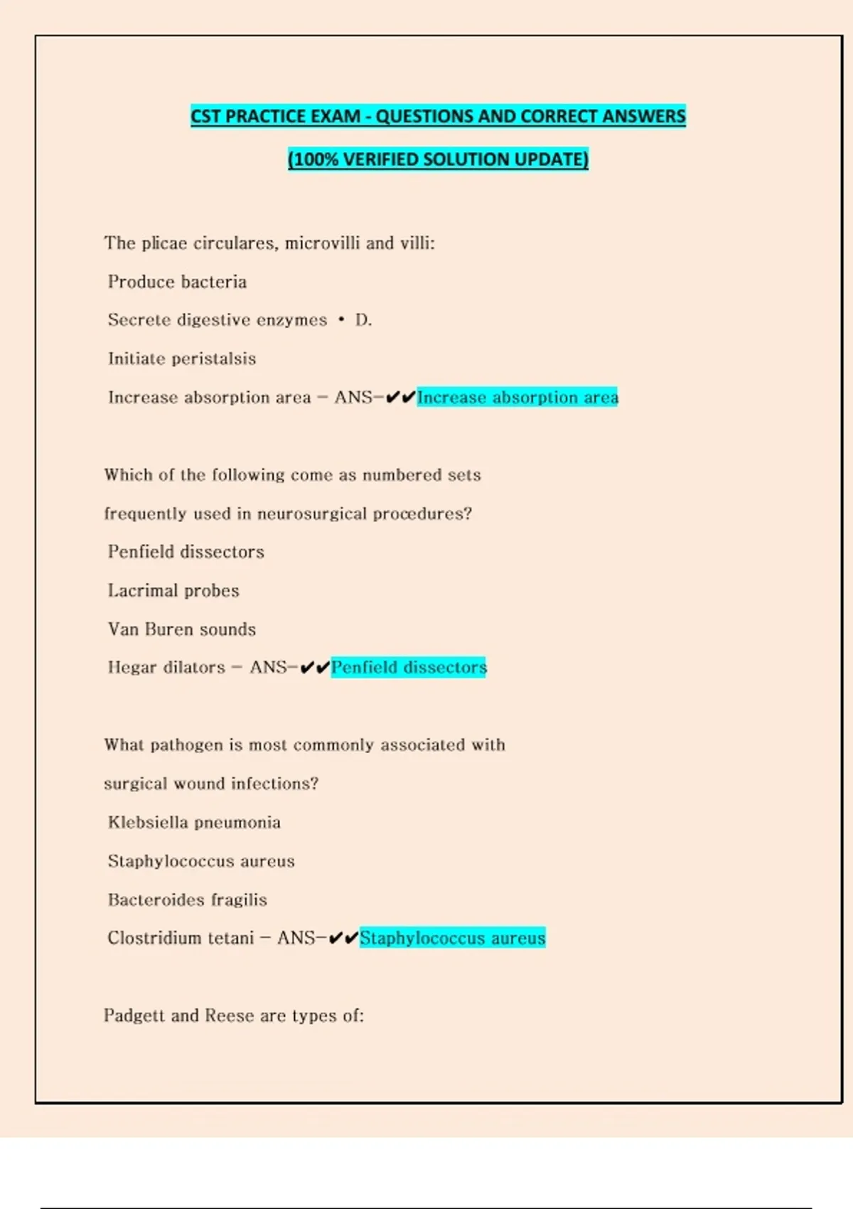 CST PRACTICE EXAM - QUESTIONS AND CORRECT ANSWERS (100% VERIFIED SOLUTION UPDATE)