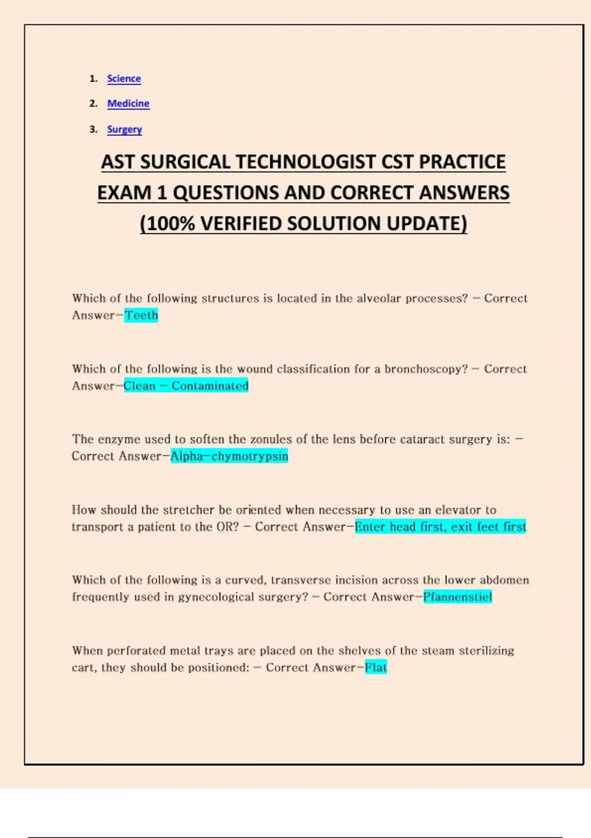 AST SURGICAL TECHNOLOGIST CST PRACTICE EXAM 1 QUESTIONS AND CORRECT ANSWERS (100% VERIFIED SOLUTION UPDATE)