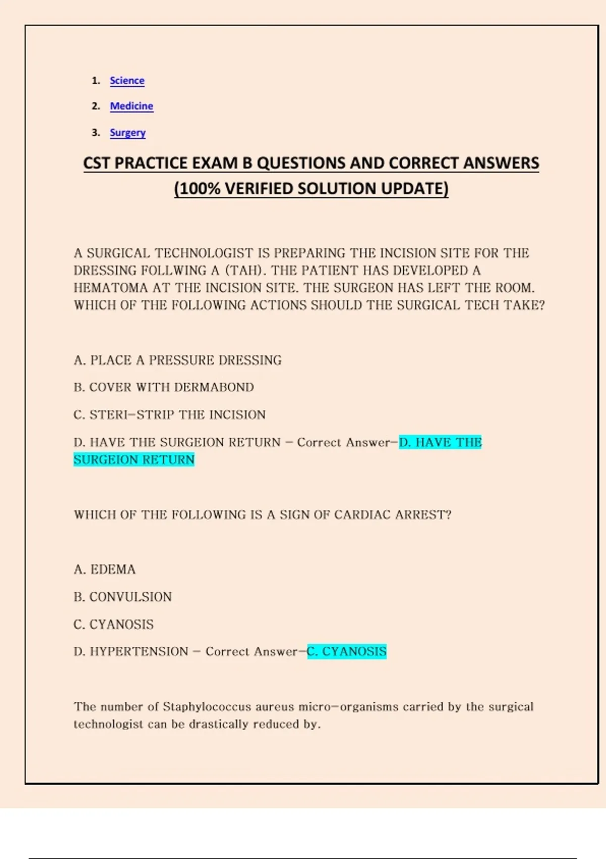 CST PRACTICE EXAM B QUESTIONS AND CORRECT ANSWERS (100% VERIFIED SOLUTION UPDATE)