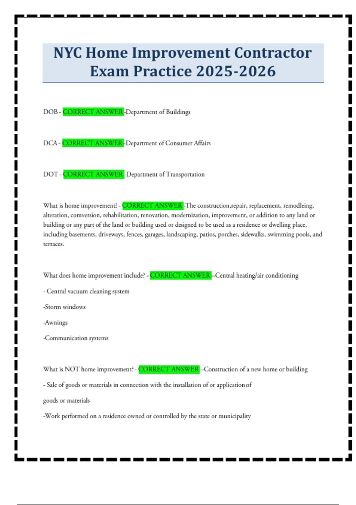 nyc home improvement contractor exam practice 2025