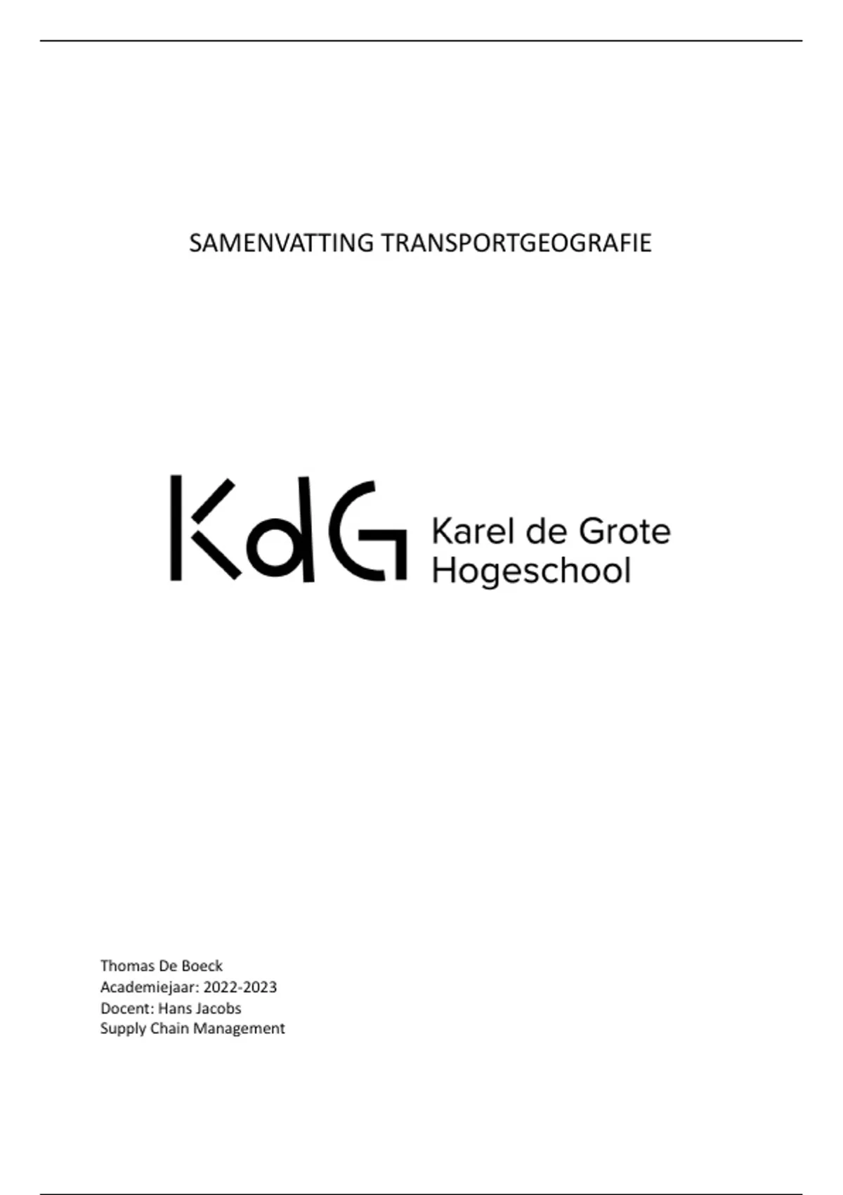 SAMENVATTING TRANSPORTGEOGRAFIE