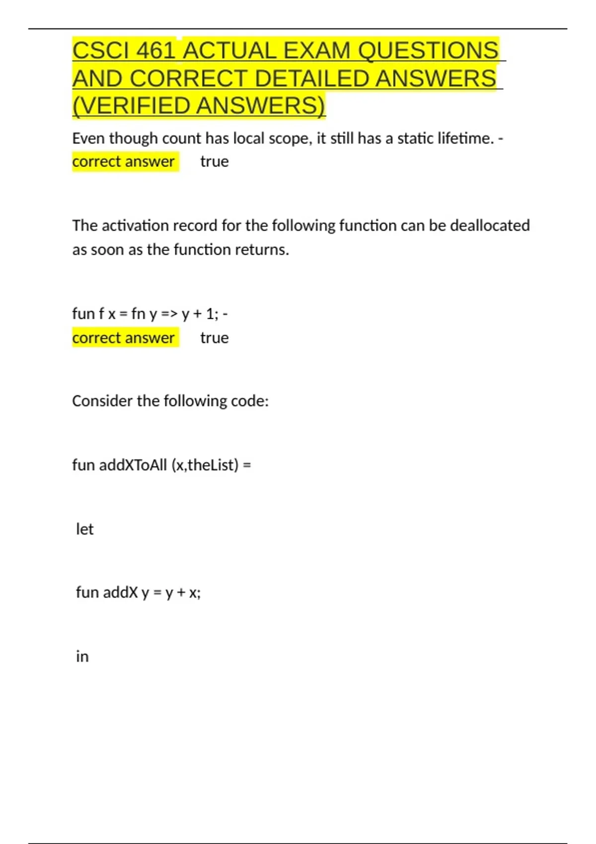, CSCI 461 ACTUAL EXAM QUESTIONS