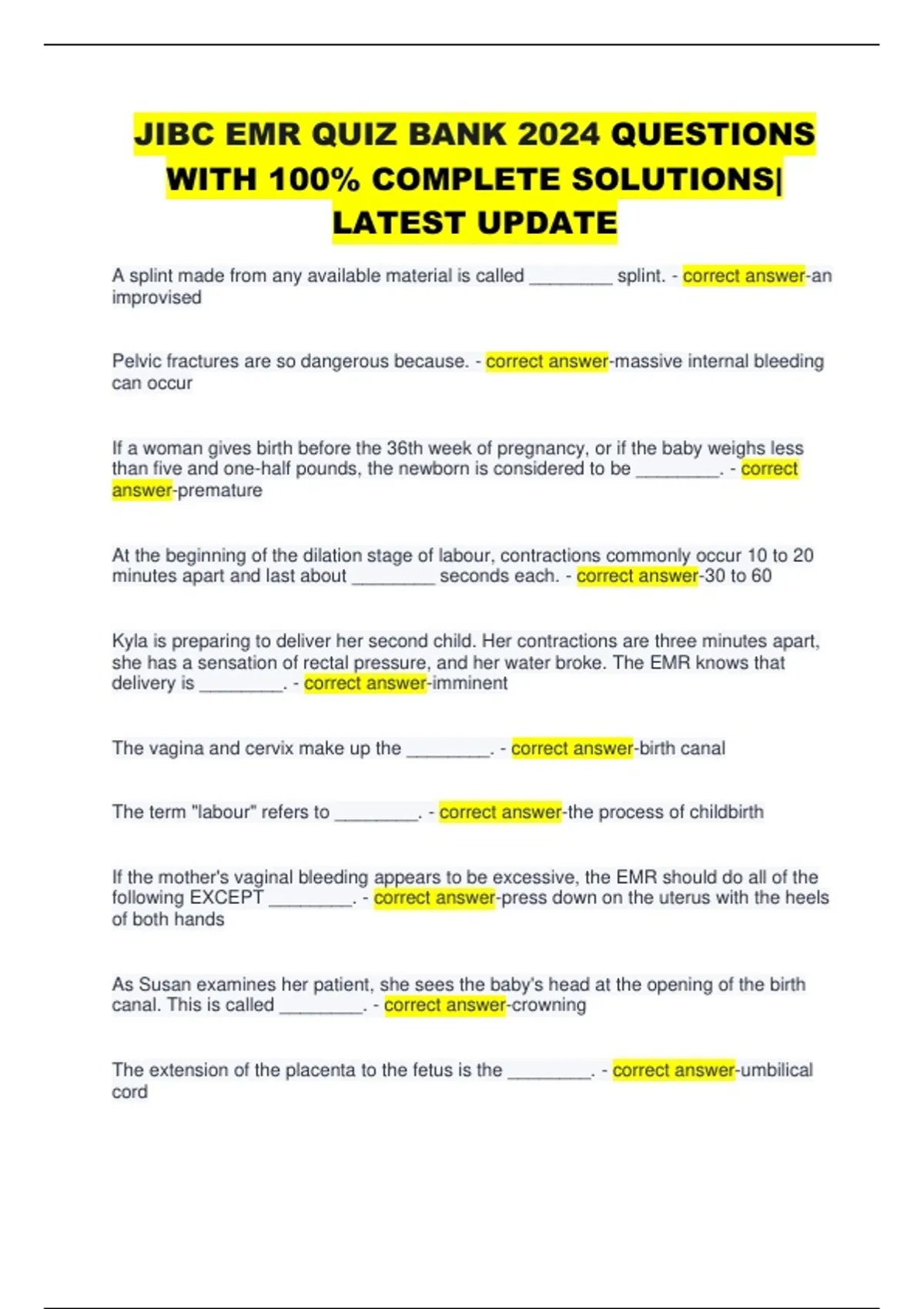 JIBC EMR QUIZ BANK 2024 QUESTIONS