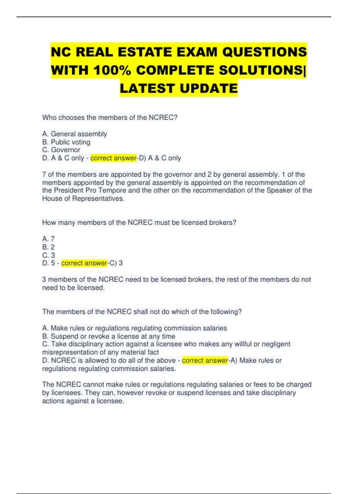 NC REAL ESTATE EXAM QUESTIONS WITH 100% COMPLETE SOLUTIONS| LATEST UPDATE