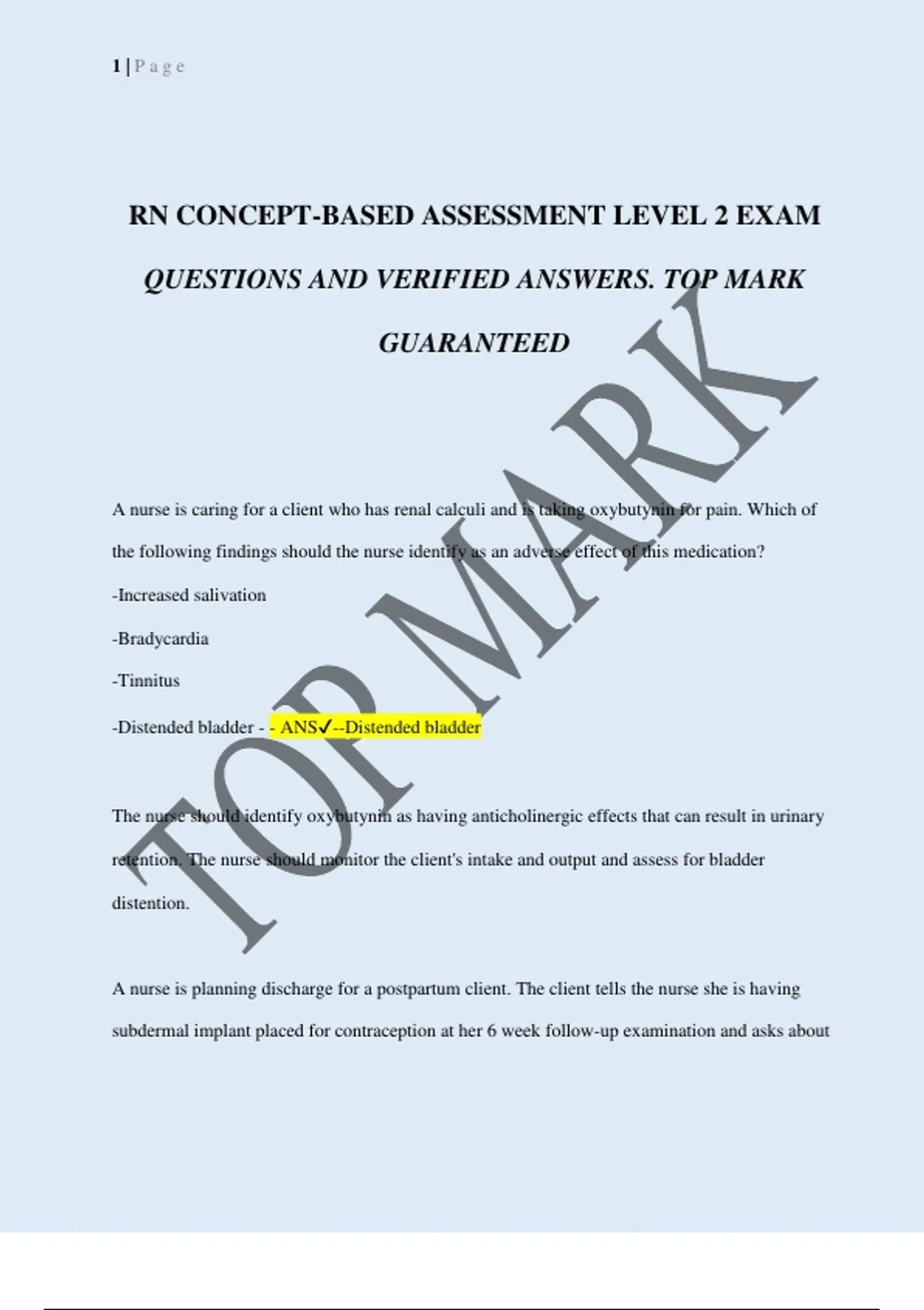 QUESTIONS AND VERIFIED ANSWERS. TOP MARK