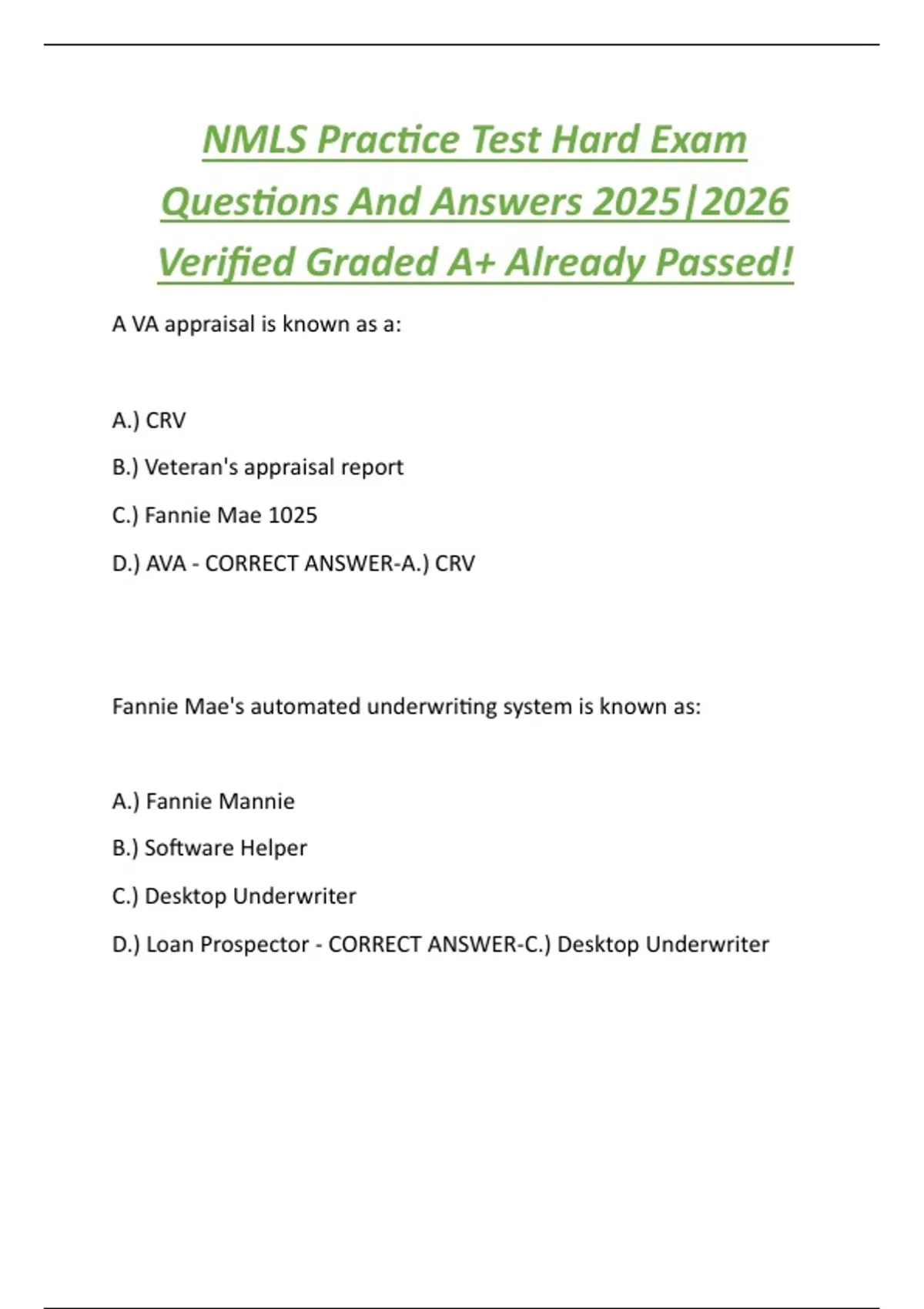 D.) Loan Prospector - CORRECT ANSWER-C.) Desktop Underwriter