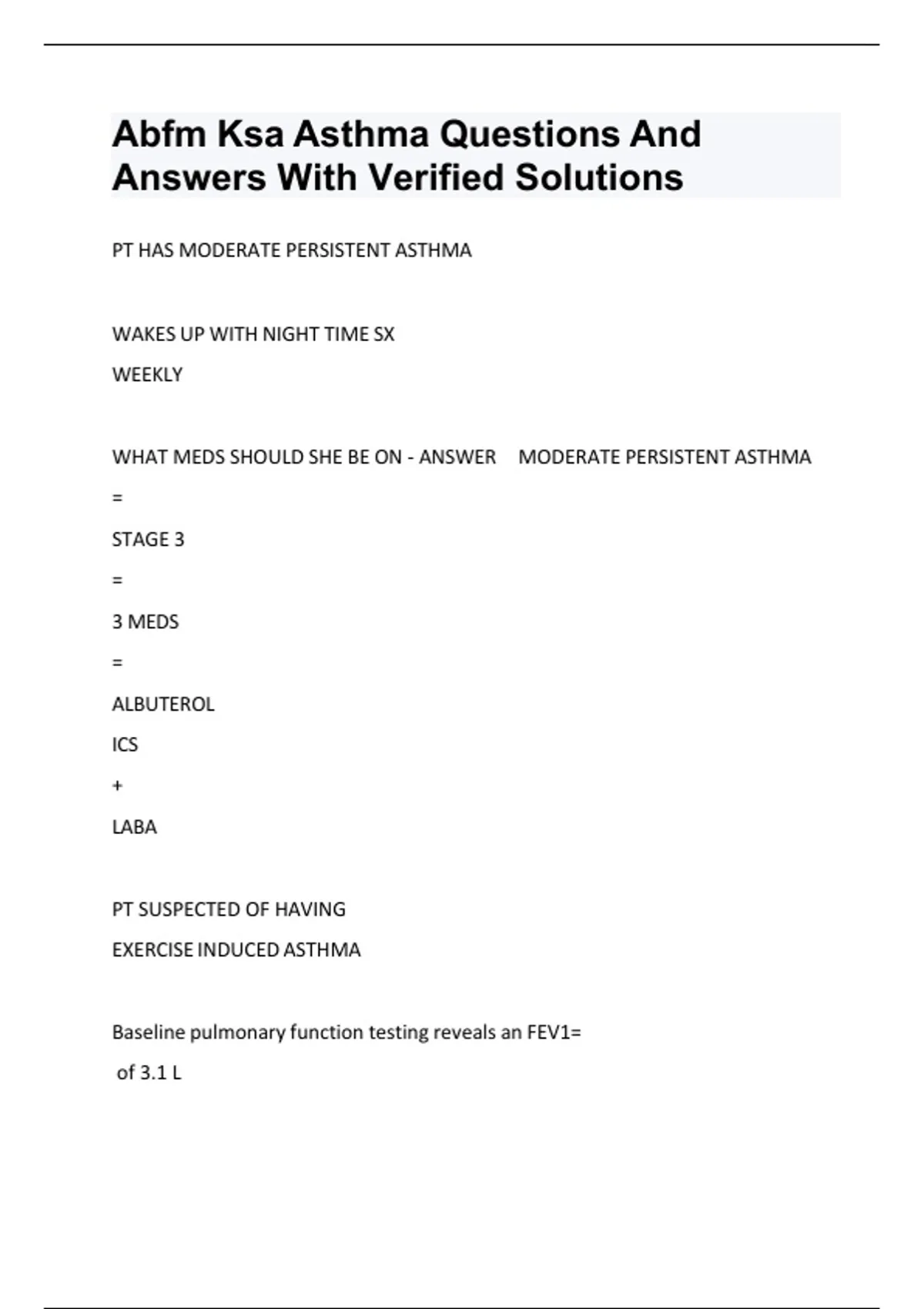 Abfm Ksa Asthma Questions And Answers With Verified Solutions