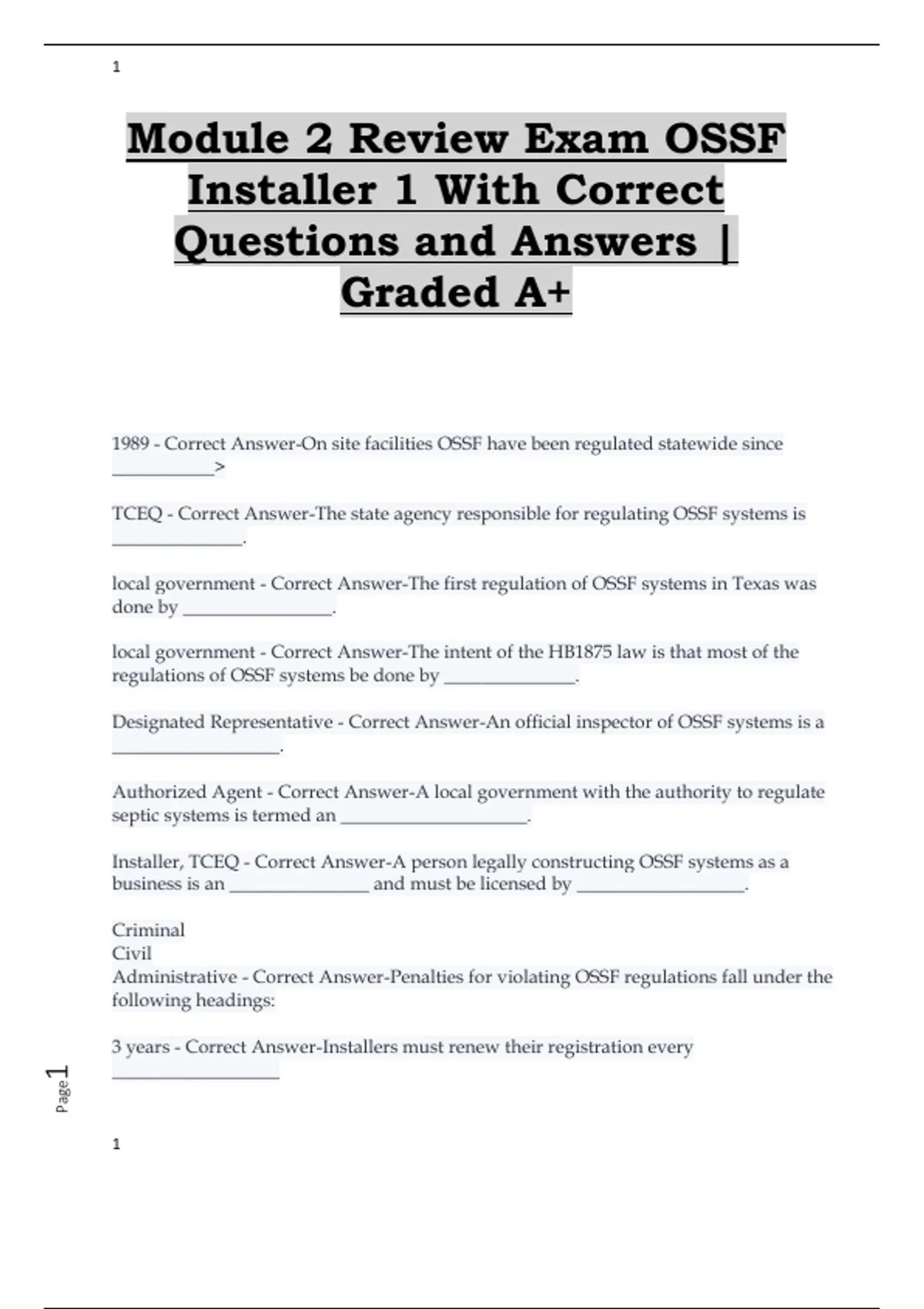 Module 2 Review Exam OSSF Installer 1 With Correct Questions and Answers | Graded A+