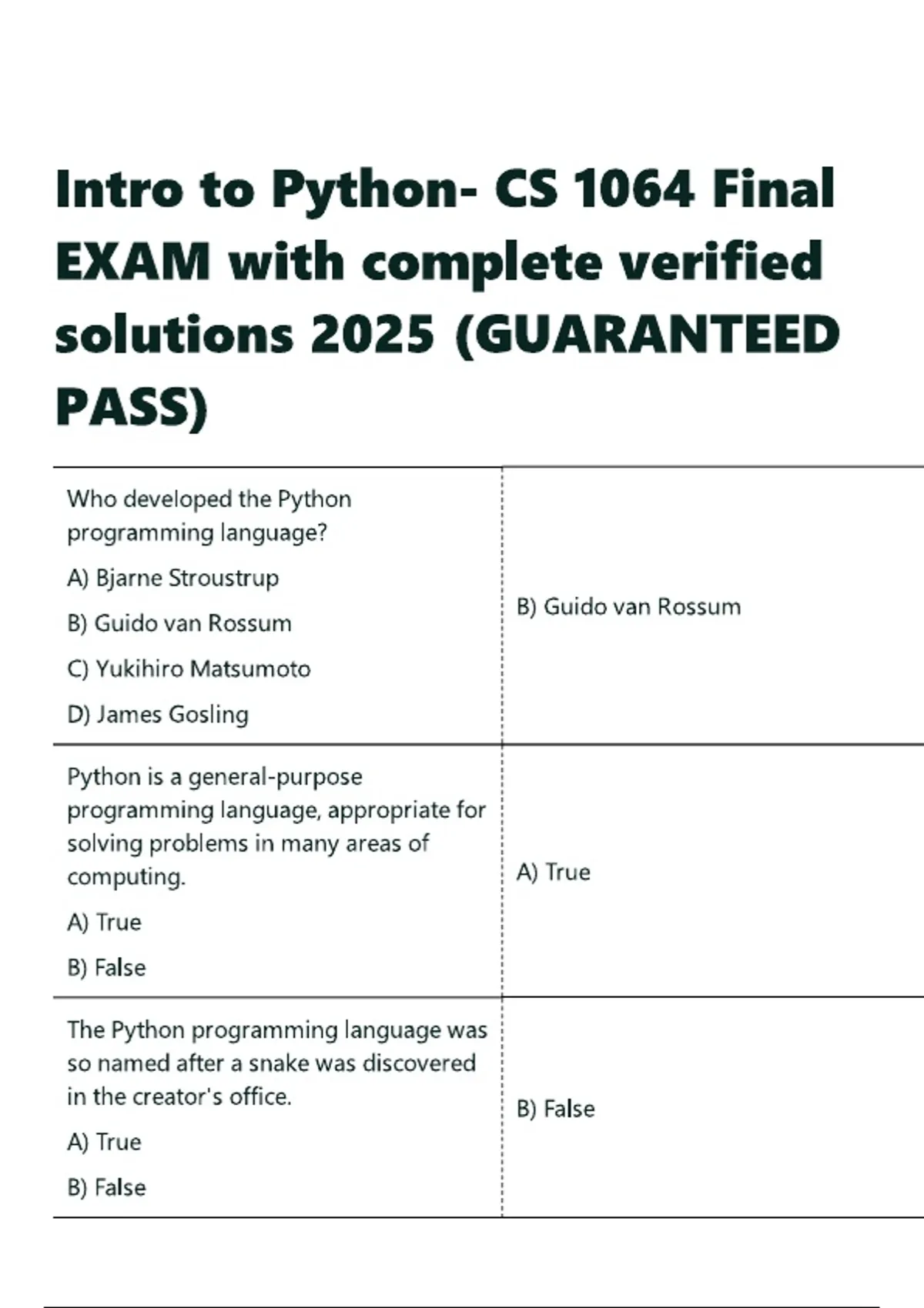 Intro to Python- CS 1064 Final EXAM with complete verified solutions 2025 (GUARANTEED PASS)