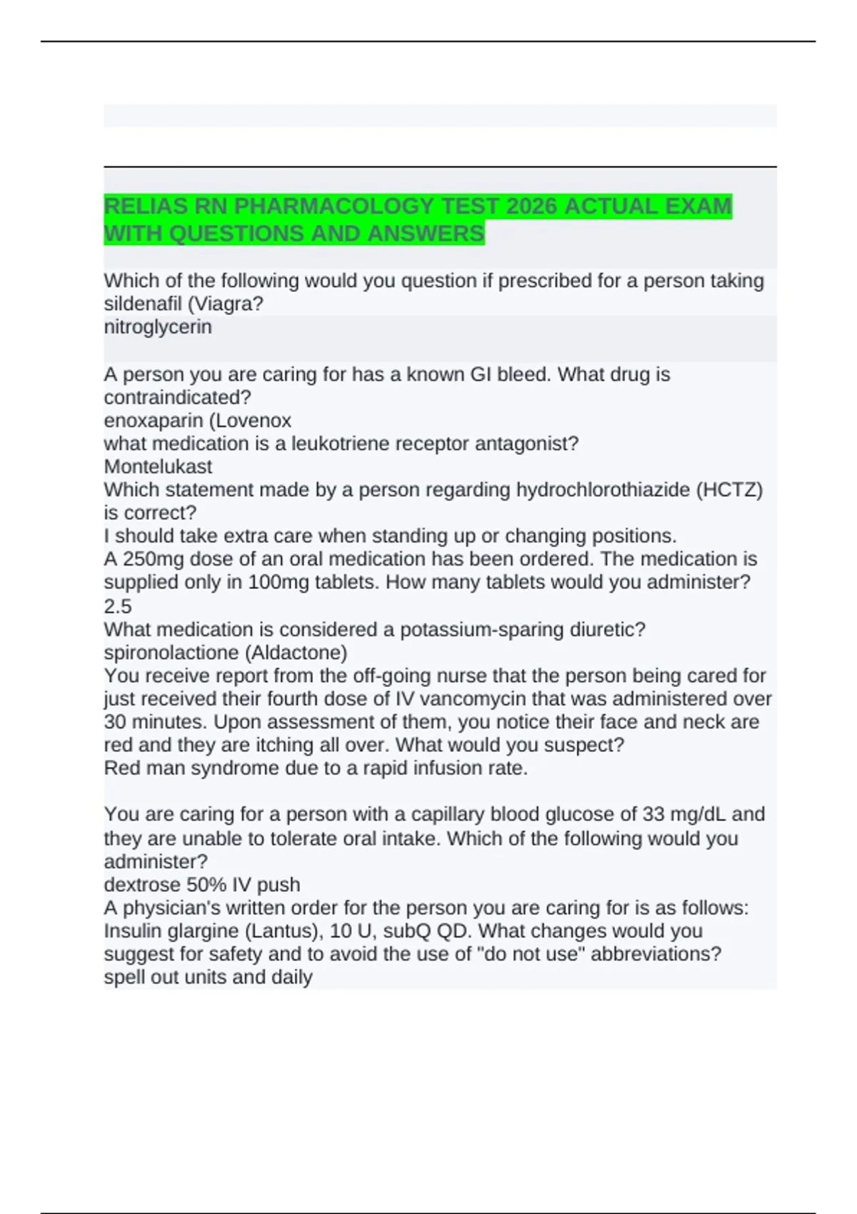 RELIAS RN PHARMACOLOGY TEST 2026 ACTUAL EXAM WITH QUESTIONS AND ANSWERS RELIAS RN PHARMACOLOGY TEST 2026 ACTUAL EXAM WITH QUESTIONS AND ANSWERS