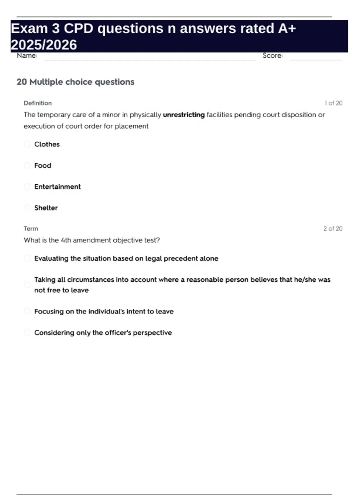 Exam 3 CPD questions n answers rated A+ 2025/2026
